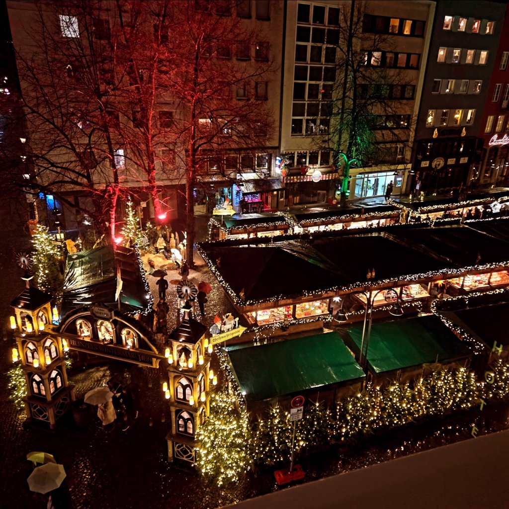 With a bit less crowds we can take a second run at the Weinachtsmarkt Koelner outside our hotel this morning.